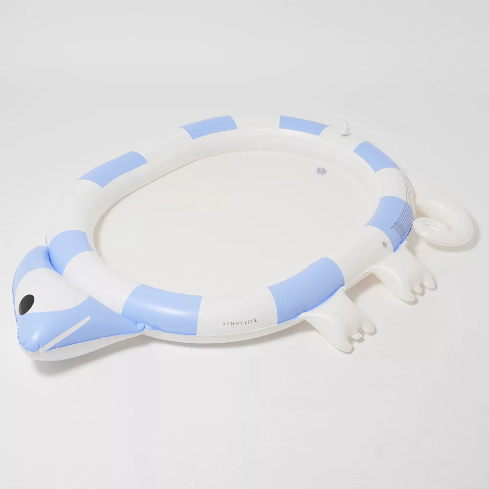 A Sunnylife szökőkút pancsoló - Into the Wild Blue minden gyermek számára tökéletes nyári társ, aki szereti a vízzel való játékot. A kaméleon formája és a frissítő tengerkék-fehér színkombináció biztosan minden gyermek figyelmét felkelti, miközben biztonságos és szórakoztató környezetet biztosít a vízzel való ismerkedéshez.