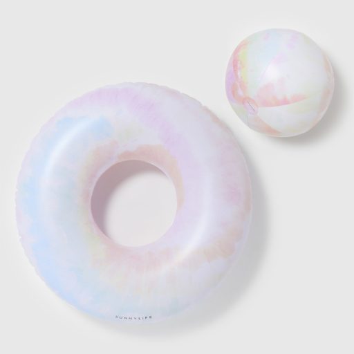 Vidd a nyári stílust egy új szintre a Sunnylife Úszógumi - Felfújható Strandlabdával Tie Dye szett segítségével, amely a divatos batikolt hatású színvilágban készült, rózsaszín, lila és babakék árnyalatokkal. Ez a különleges szett nemcsak egy lenyűgöző úszógumit tartalmaz, hanem egy hozzá illő felfújható strandlabdát is, így dupla örömöt garantál a vízparton!