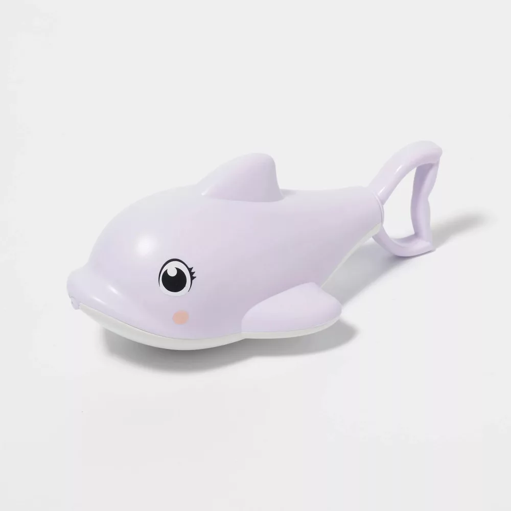 - Játékos és barátságos design: A pasztell lila színű delfin formája mosolyt csal mindenki arcára, miközben a nagy, ragyogó szemekkel felhívja a figyelmet a vízi játékok során.