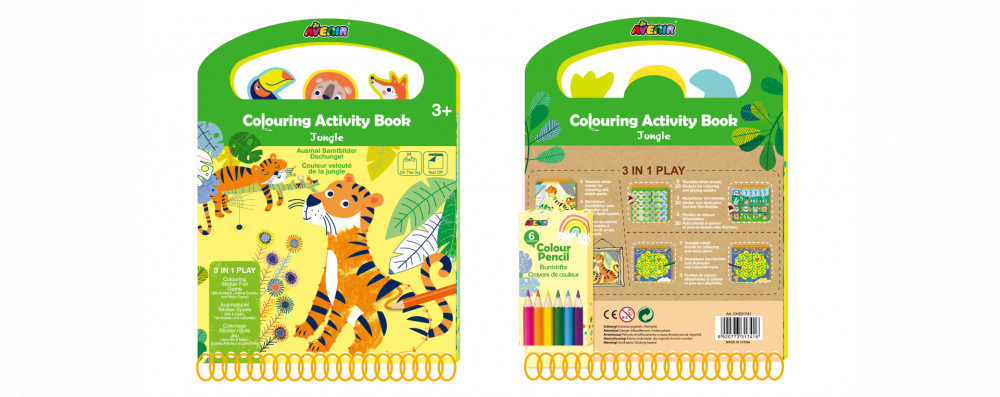 Ez a fejlesztő Avenir kiskönyv többféle feladattal szórakoztat és mozgatja meg agytekervényeidet, ráadásul 6 db színes ceruzát is tartalmaz. Fejtsd meg a különböző feladványokat, színezd ki a képeket és ragaszd fel a matricákat! Izgalmas játék a dzsungel állataival! A könyv a fogantyúja segítségével könnyedén szállítható, így bárhová magaddal viheted!