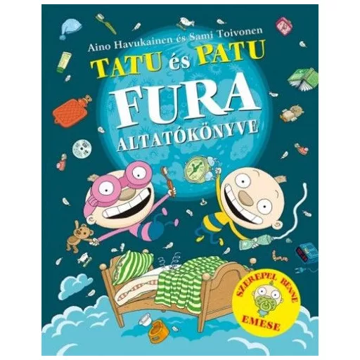 A Tatu és Patu sorozat várva-várt negyedik kötete! Minden alvó számára nélkülözhetetlen műalkotás. Amikor Tatuhoz és Patuhoz éjszakára vendégségbe érkezik a keresztlányuk, Emese, minden trükköt be kell vetniük, hogy sikerüljön álomba szenderíteniük a kislányt. Szerencsére bőven akadnak trükkök a fivérek összegyűjtötte útmutatóban, ami a F.U.R.A., azaz a Fontos és Utolérhetetlen Regiszter az Alváshoz nevet kapta. A műben minden szükséges tudnivalót megtalálni, a tökéletes alvósbaba kiválasztásától az álmatlan éjszakák hibakeresési útmutatójáig, az altatódal előadójának megfelelő beleélési fokától a hosszan tartó éjszakai kakukkolás drámai következményeiig. És vajon mennyire vadak a furavári fivérek saját kalandjai az álmok világában? Ráadásként a világ legbugyutább esti meséje! Tatu és Patu kalandjairól az alábbi kötetekben is olvashatsz: Tatu és Patu fura masinái; Tatu és Patu a munka hevében; Tatu és Patu az óvodában .