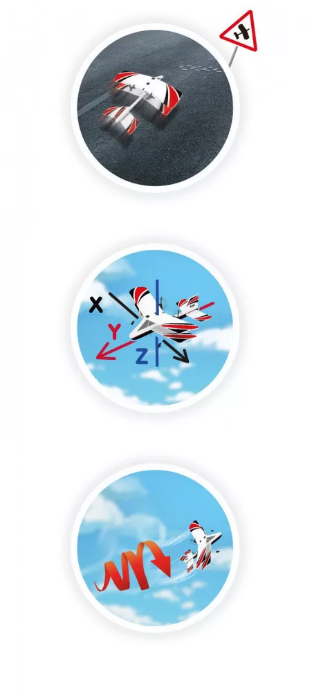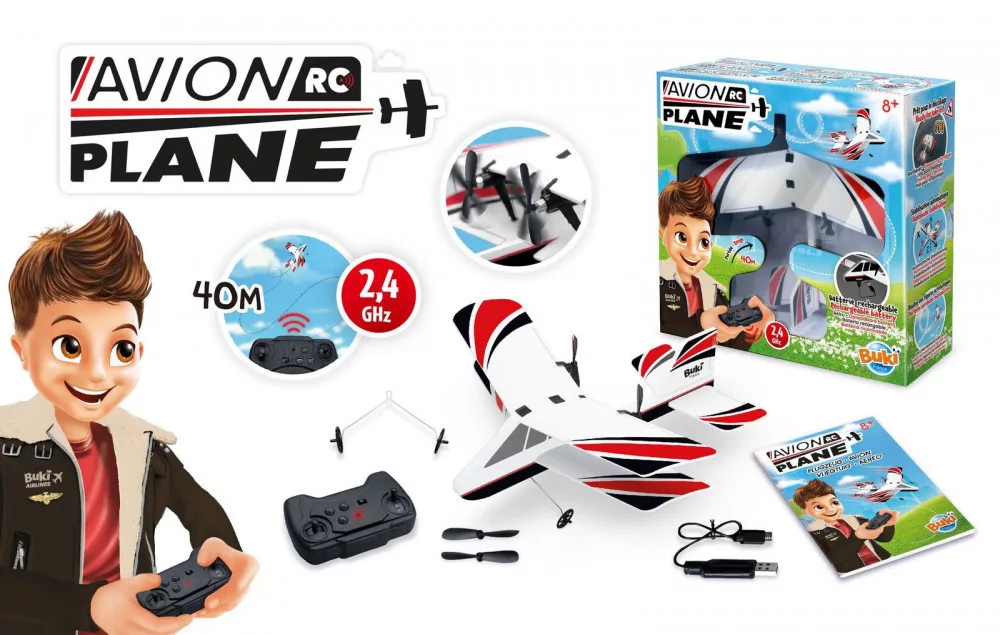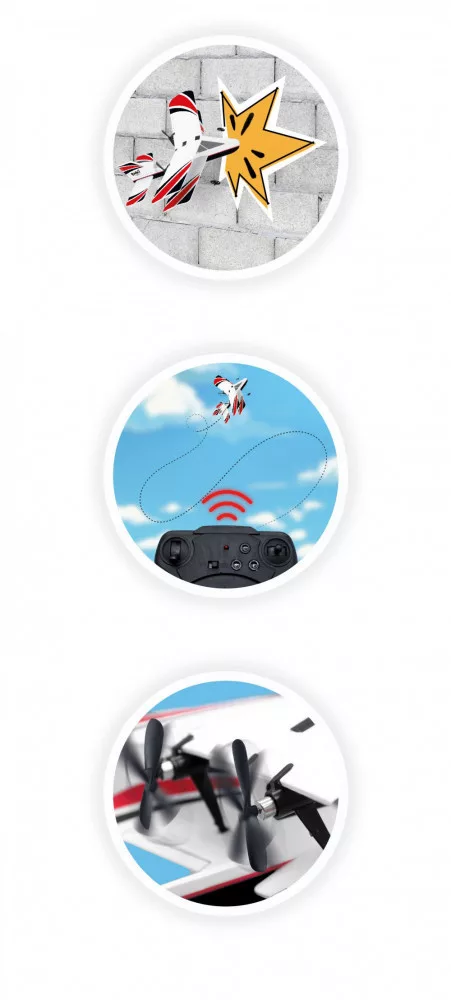 Könnyen repültethető rádióvezérlésű repülőgép beltéri és kültéri használatra. A beépített giroszkóp stabilan tartja. A test ütésálló habszivacsból készült. A repülőgép 3,7 V-os lítium akkumulátorral működik, és a mellékelt USB kábellel tölthető. A rádióvezérlés hatótávolsága 40 méter.