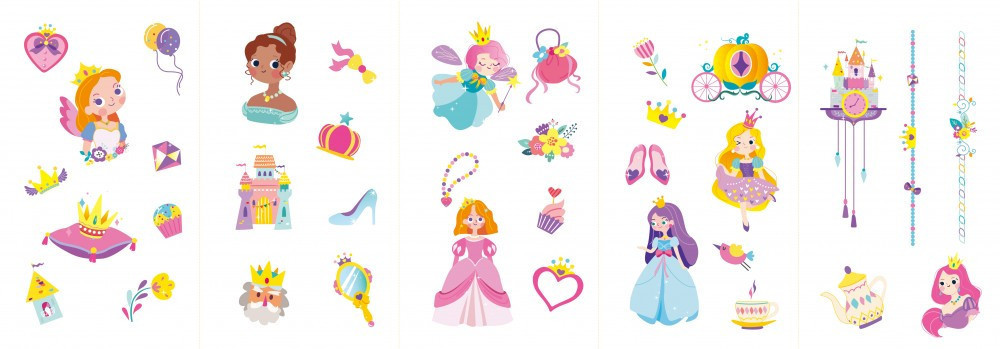 Szereted a hercegnőket és a lemosható tetoválásokat? Akkor ezt a készletet neked találták ki! 260 db körömmatrica és lemosható tetoválás gondoskodik arról, hogy kedvenc motívumaidat magadon hordhasd!