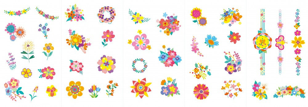 Szereted a virágokat és a lemosható tetoválásokat? Akkor ezt a készletet neked találták ki! 260 db körömmatrica és tetoválás gondokodik arról, hogy kedvenc motívumaidat magadon hordhasd!