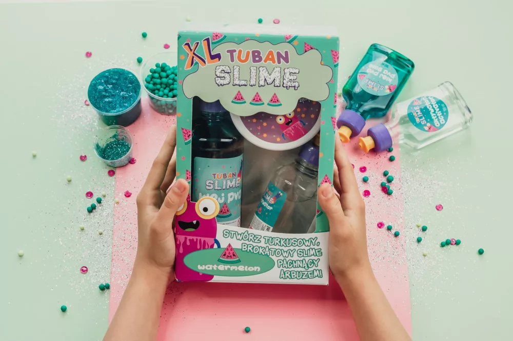 Képzeld el: egy hatalmas adag slime, ami nem csak szupernyúlós és csillogó, de még finom, édes görögdinnye illata is van! Ez a Tuban XL-es slime készítő szett nem csak a kezeidet, de a fantáziádat is beindítja! A vibráló türkiz szín és a csillámok olyan vagány kombinációt alkotnak, aminek senki nem tud ellenállni.