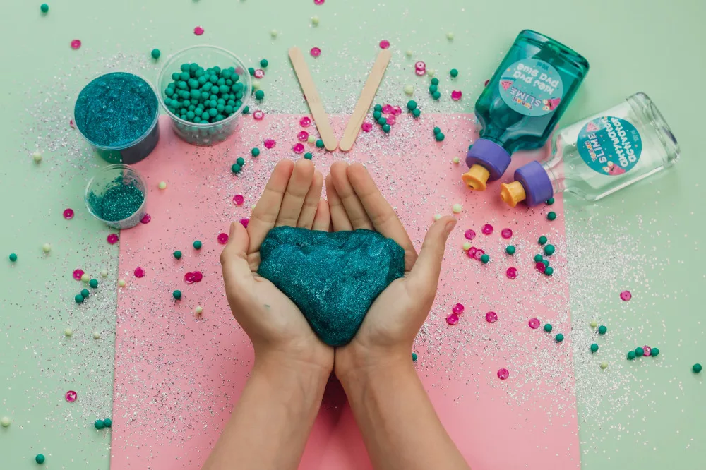 - Mert a türkiz szín és a csillámok annyira menők, hogy legszívesebben megennéd a slime-ot (de persze nem szabad!).