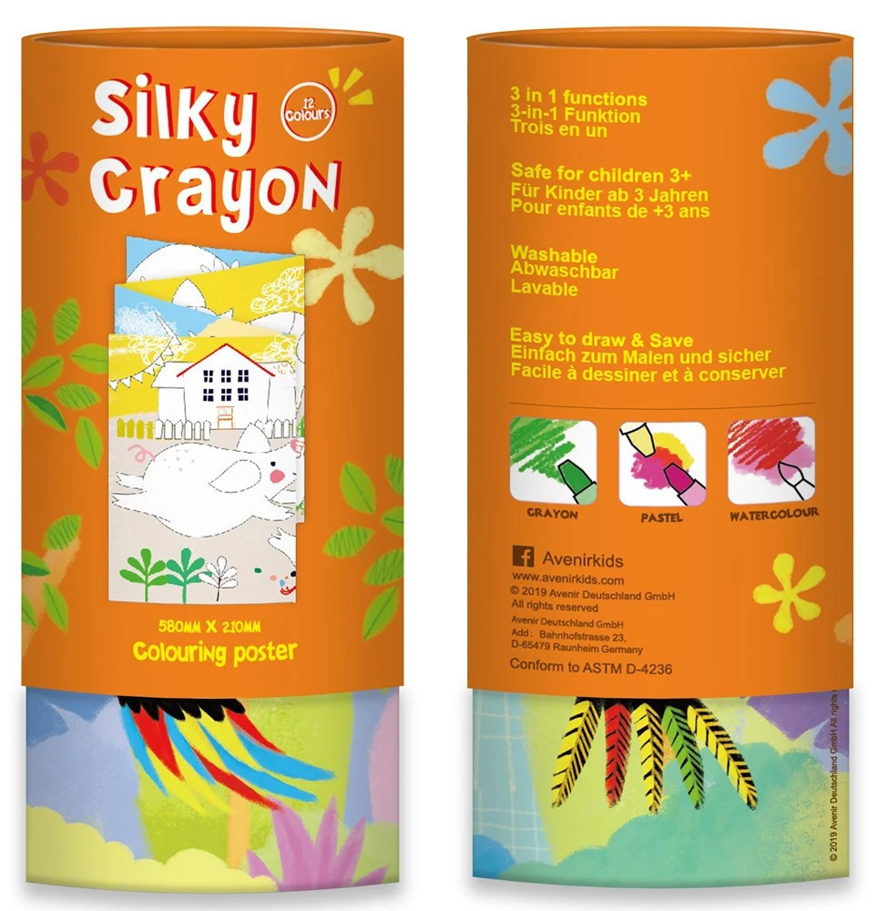 12 db-os zsírkréta készlet, amely 3 az 1-ben funkciójának köszönhetően zsírkréta, akvarell kréta és gélpasztel krétaként is használható! Ezek a gyönyörű színes kréták gyorsan száradnak, moshatók, rendkívül simán csúsznak a papíron és különféle élénk színekben pompáznak. A dobozban található egy két oldalas 58cm x 21cm méretű poszter is, melyet a gyerekek kedvükre kiszínezhetnek. Méretéből adódóan egyszerre akár több gyerkőc is a kép köré ülhet és alkothat.