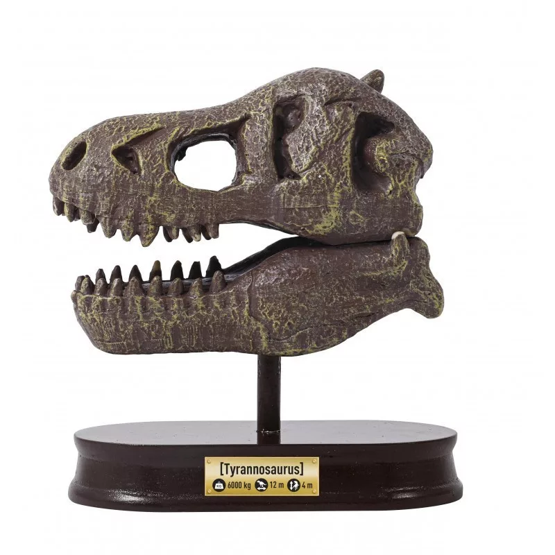 A kiásott koponya egy állványra szerelhető, amely így különleges dekorációja lehet a gyerekszobának.