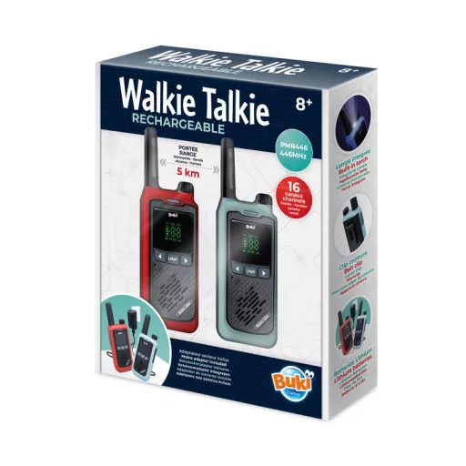 Újratölthető walkie-talkie-k 5 km hatótávolsággal. Ezek a nagy hatótávolságú walkie-talkie készlet két lítium akkumulátorral működő eszközt és egy dupla hálózati töltőt tartalmaznak. A walkie-talkiek továbbfejlesztett mikrofonnal és hangszóróval lettek ellátva a tisztább beszélgetésekért.