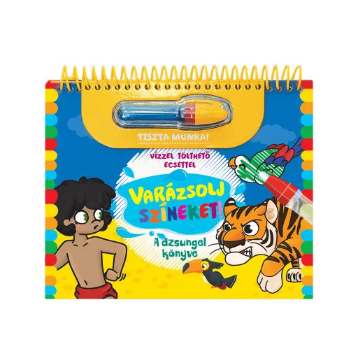 A Varázsolj színeket! - A dzsungel könyve egy különleges kreatív foglalkoztató könyv, amely Maugli és barátai világába repíti a gyerekeket. A könyv lapjain kedves jelenetek és ismert szereplők várják a kicsiket, akik a mellékelt vízzel tölthető toll segítségével kelthetik életre a képeket. Ahogy a tollal végighaladnak az illusztrációkon, előbukkannak a színek, a dzsungel titokzatos világa és a klasszikus történet varázslatos részletei. A képek száradás után újra kiszínezhetők, így a gyerekek újra és újra átélhetik a varázslatos színezés élményét.