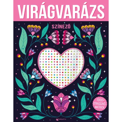 Varázslatos virágos színező színes strasszkövekkel.