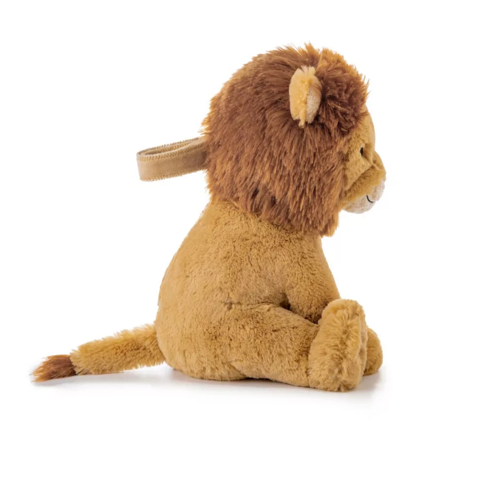 A tépőzáras rögzítő segítségével az oroszlánt könnyedén rögzítheted a kiságyhoz, babakocsihoz vagy autósüléshez. Az ultra-puha plüss könnyen mosható, hiszen a hangmodul eltávolítása után a mosógépben tisztítható.