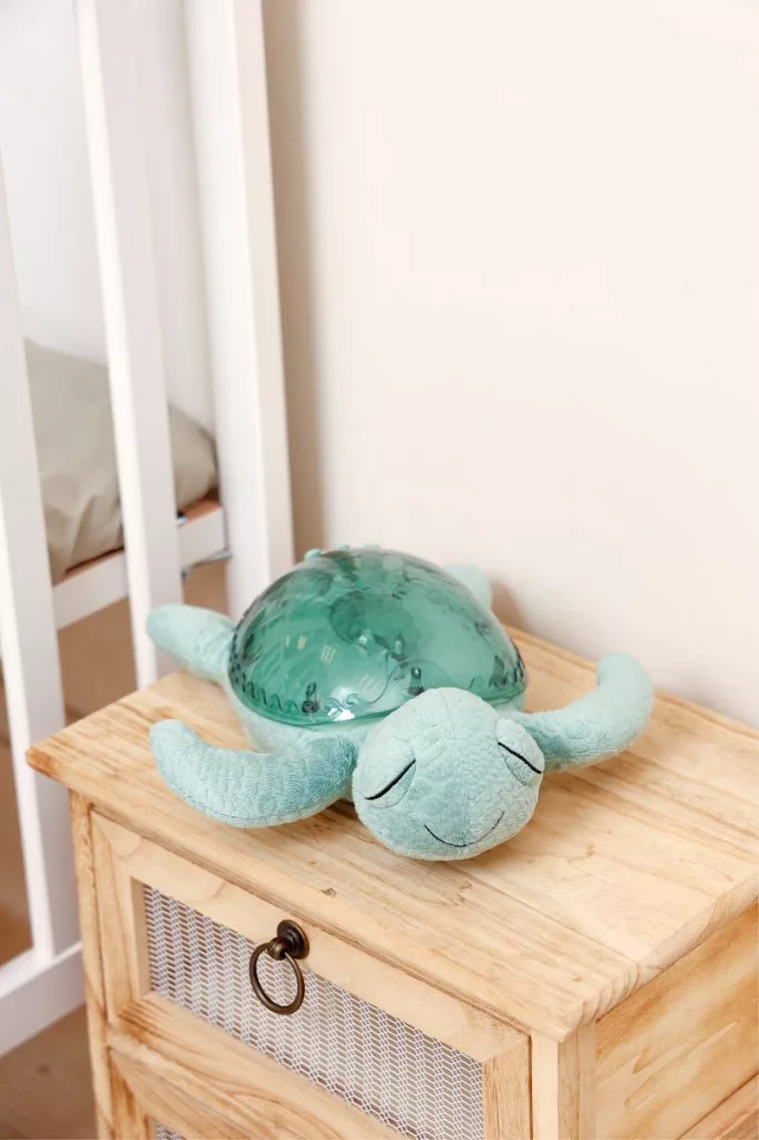 A Cloud B Tranquil Turtle Zöld ideális elhelyezési pontja a szoba közepén, hogy a mennyezeten és falakon egyenletesen oszoljanak el a nyugtató fényhatások. Kombináld a megfelelő hangerővel és a sírásérzékelő funkcióval a baba nyugodt éjszakáiért.