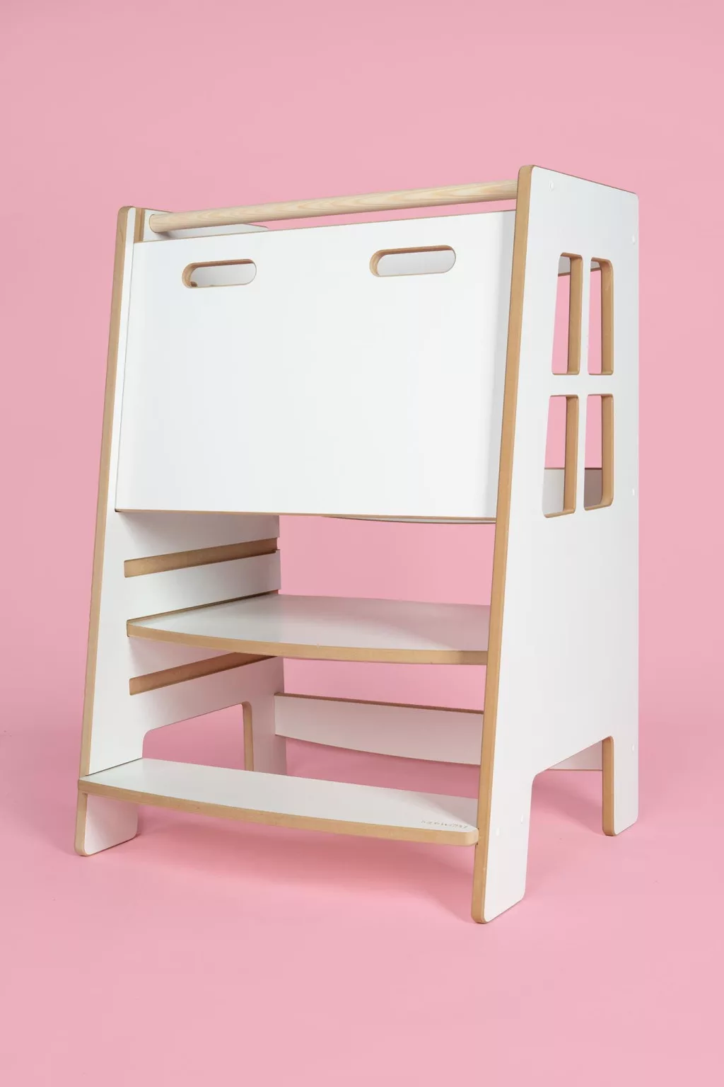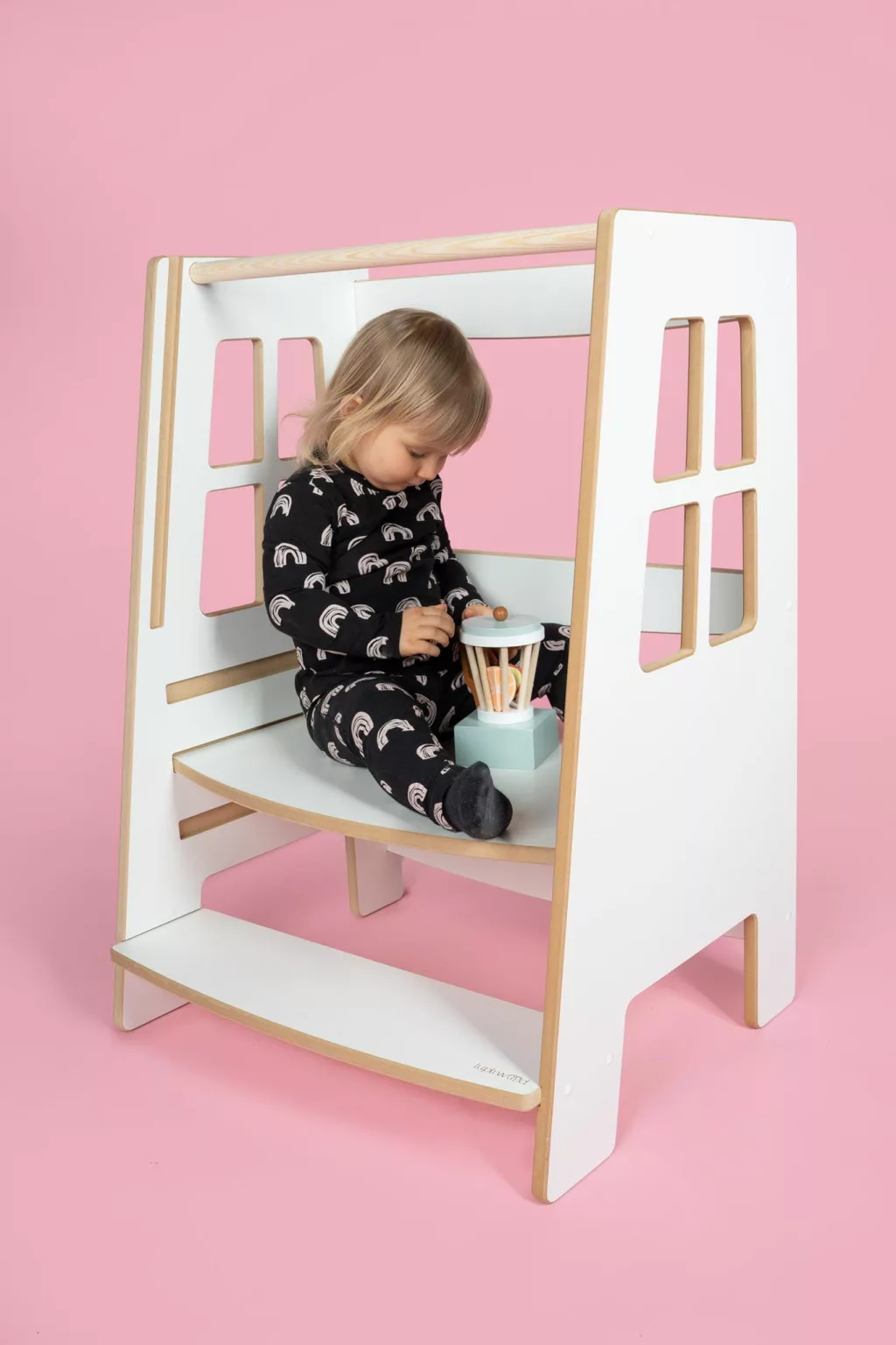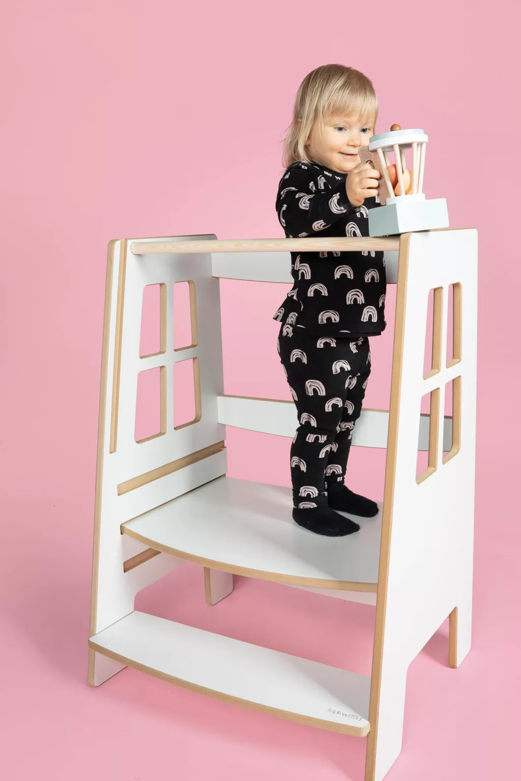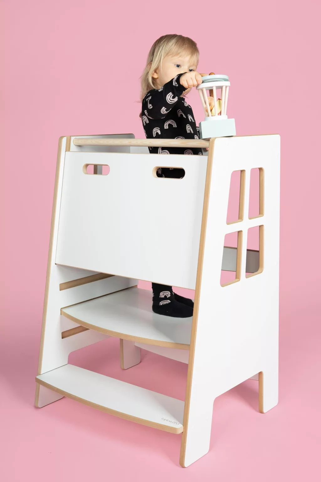 A tanulótorony nem csupán praktikus, hanem esztétikus bútordarabként is megállja a helyét. Formavilága és színvilága skandináv ihletésű, így harmonikusan illeszkedik a modern otthonokhoz, még nagyobb méretben is.